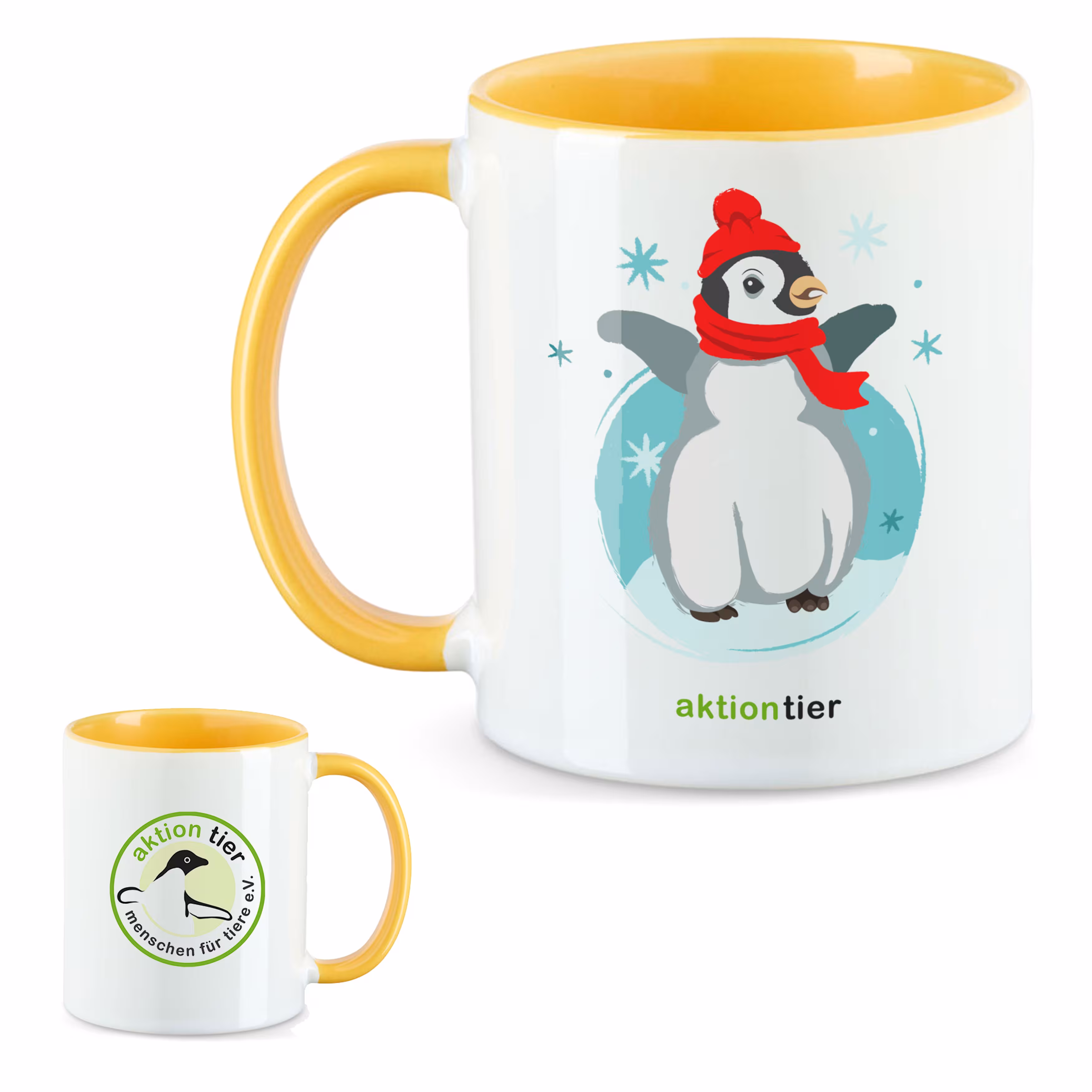 aktion tier Tasse – Motiv: "Winterpinguin" – Farbe: "Goldgelb"