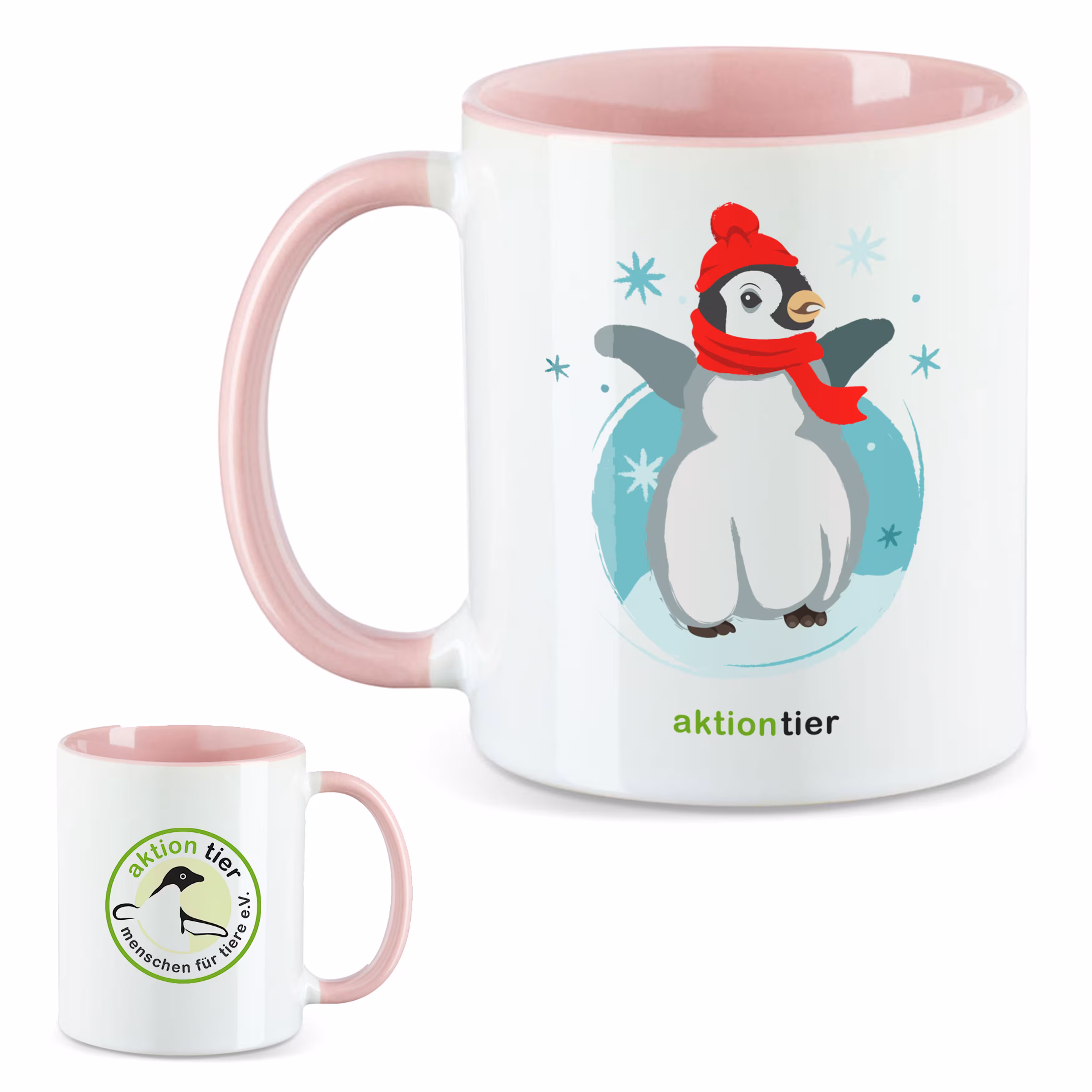 aktion tier Tasse – Motiv: "Winterpinguin" – Farbe: "Rosa"
