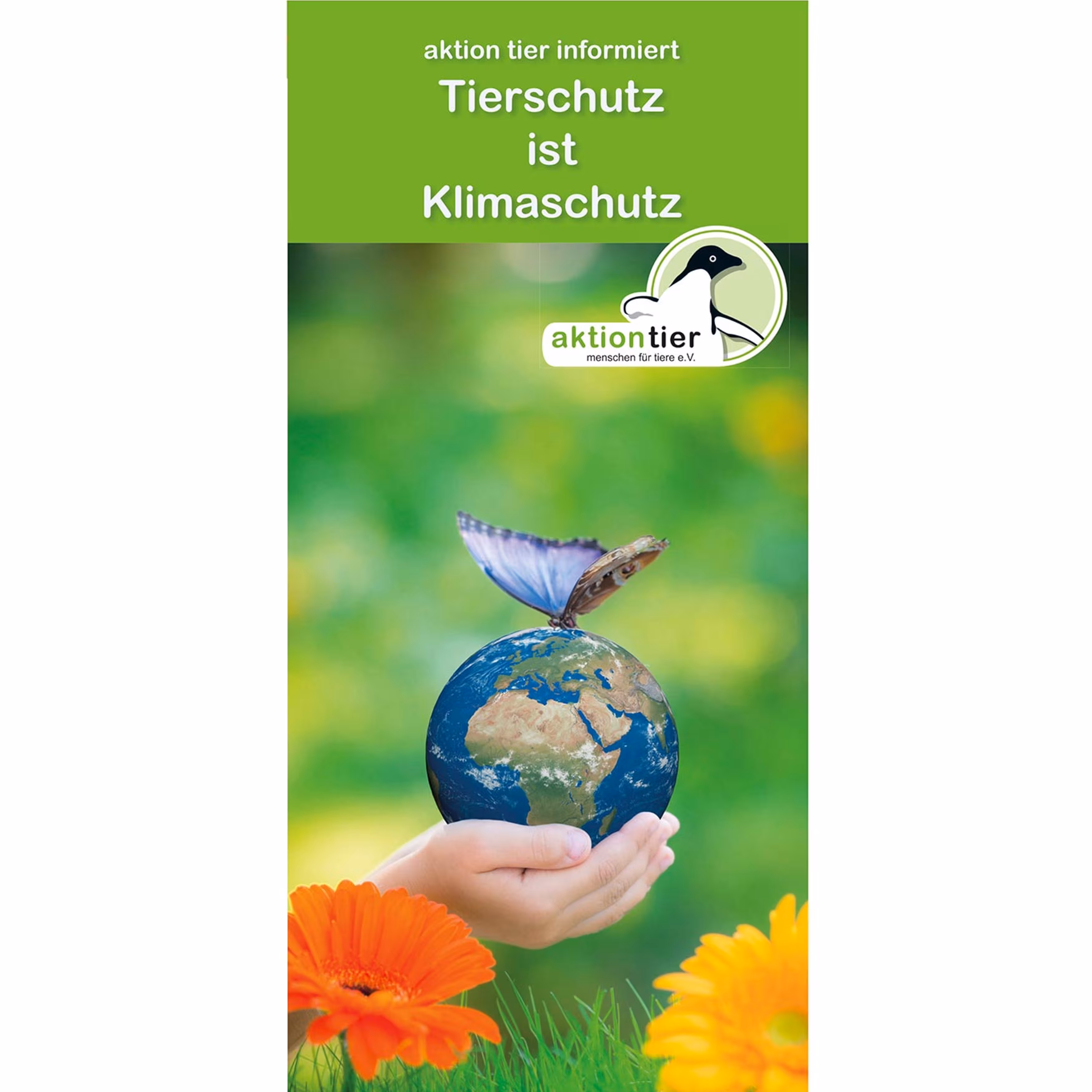 Dass Tierschutz und Klimaschutz miteinander verbunden sind, zeigt dieser Flyer.